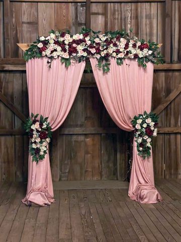 3-piece wooden arbor. Has attached hooks for drapes & floral to be added. Decor rented separately