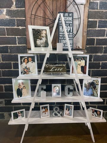 Rustic Wooden 6-tier shelf with saying "To have and to hold and to keep your drink cold"